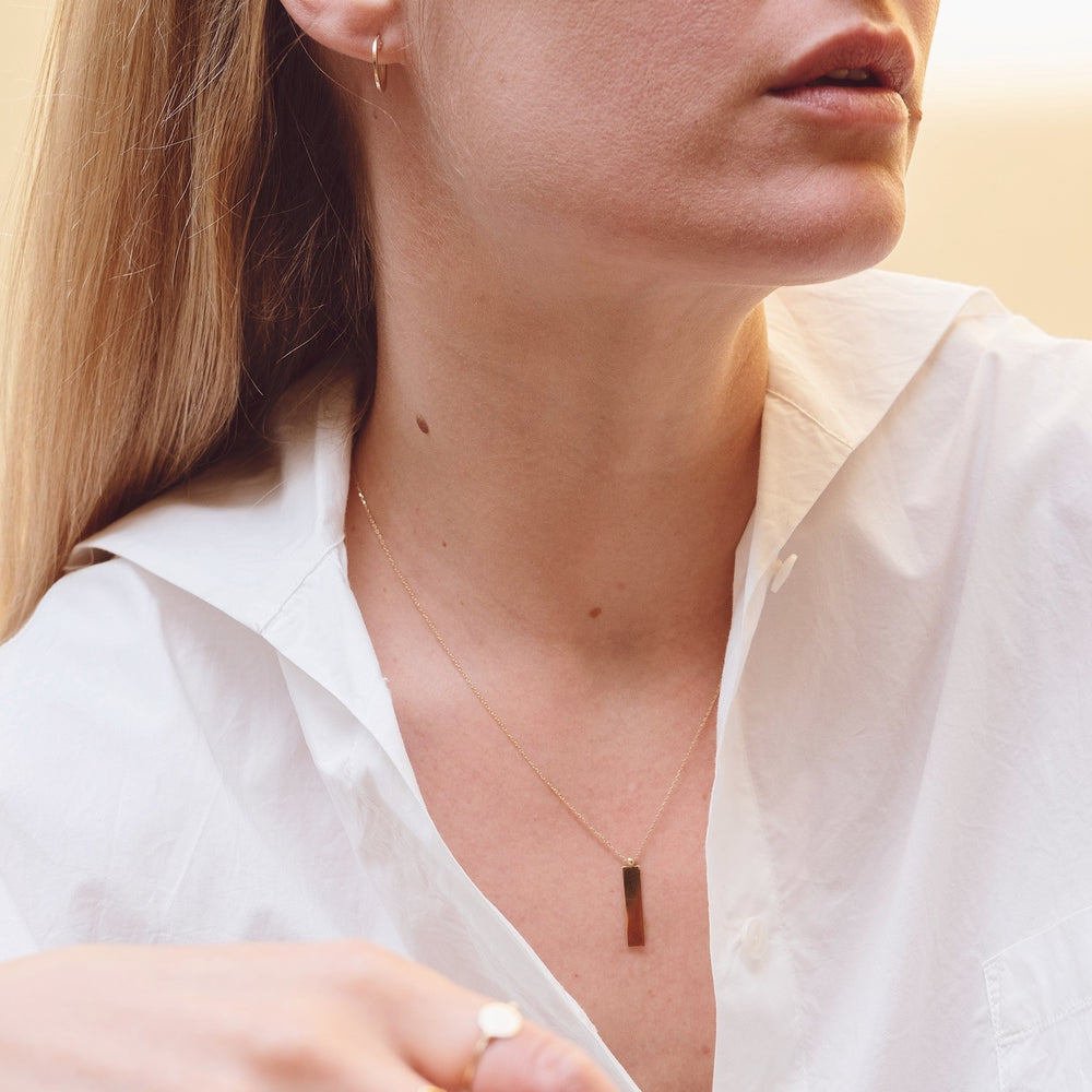 Dit prachtige sieraad is een klassieker met een twist. Een verticaal naamplaatje waarin van boven naar beneden de naam van jou of je geliefde wordt gegraveerd. De ketting heeft een fijne anker schakel, een tijdloos sieraad. De naam van de...