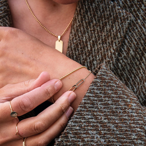 De ketting gemaakt van 14 karaats recycled goud, bestaat uit prachtige bolletjes. Deze letterlijk schitterende 'Balls from Brazil' zijn een echte eyecatcher! Een klassieke combinatie is de American Force hanger aan de ketting. Geïnspireerd op het naamplaatje uit het leger,...